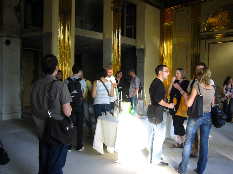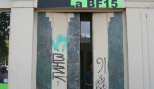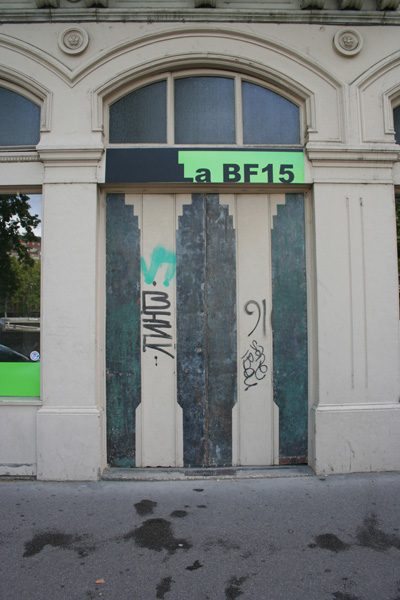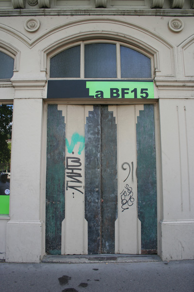 du ministère de la culture. Ce copier / coller spatial met en vitrine les ors de la république avant leur disparition définitive sous les BA 13. Les deux grandes vitrines offrent une sorte d’interface entre le chantier / atelier et la rue. Les sites internet de La BF15 et de Laurent Pernel sont deux autres vitrines à consulter. Seule la visite de chantier du 21 juin est l’occasion de visiter l’espace investi.